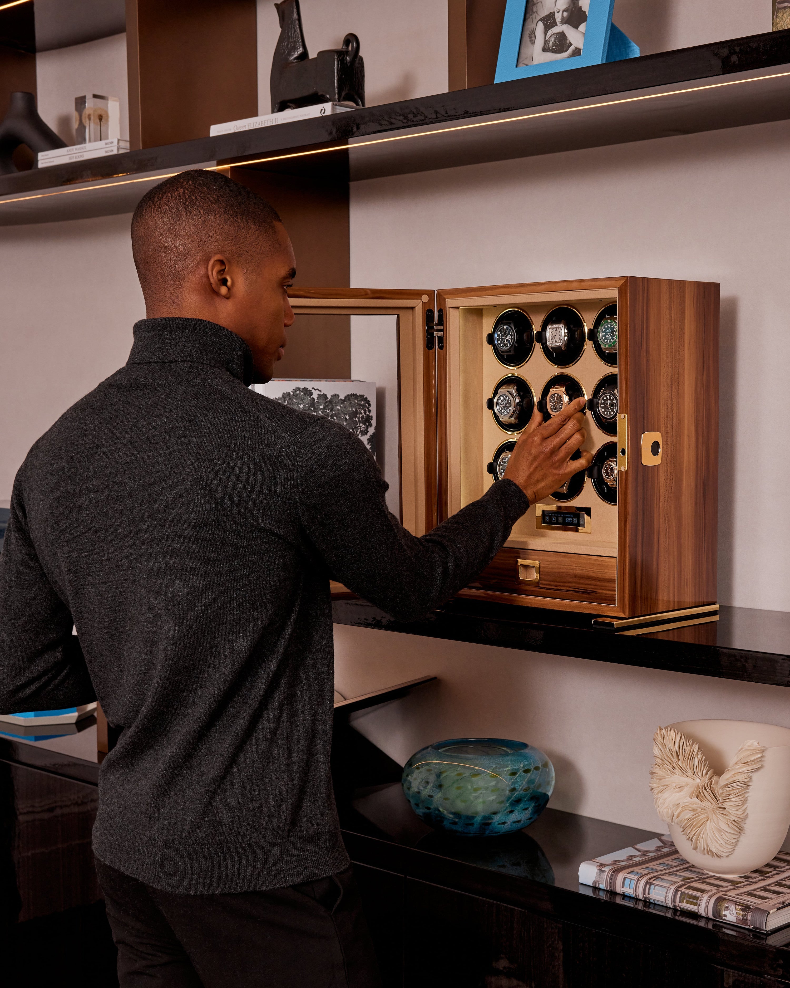 Nous mettons à votre disposition des remontoirs automatiques qui vous permettront non seulement de soigneusement ranger une partie de votre précieuse collection, mais également de maintenir en rotation vos montres nécessitant une telle attention. En plus de garantir une organisation et un rangement optimale, nos boîtes sublime davantage votre collection, servant à la fois de décoration, elles veillent également aux bons fonctionnements de vos montres autiomatiques.