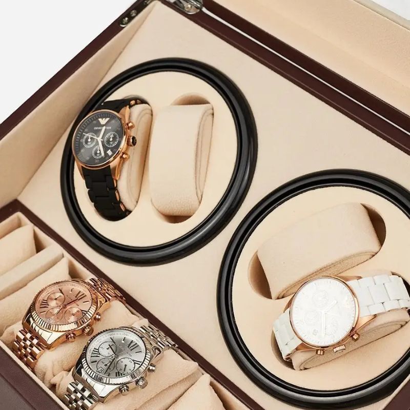 Nos remontoirs automatiques maintiennent vos montres en mouvement constant, évitant tout dérèglement lorsque vous ne les portez pas.